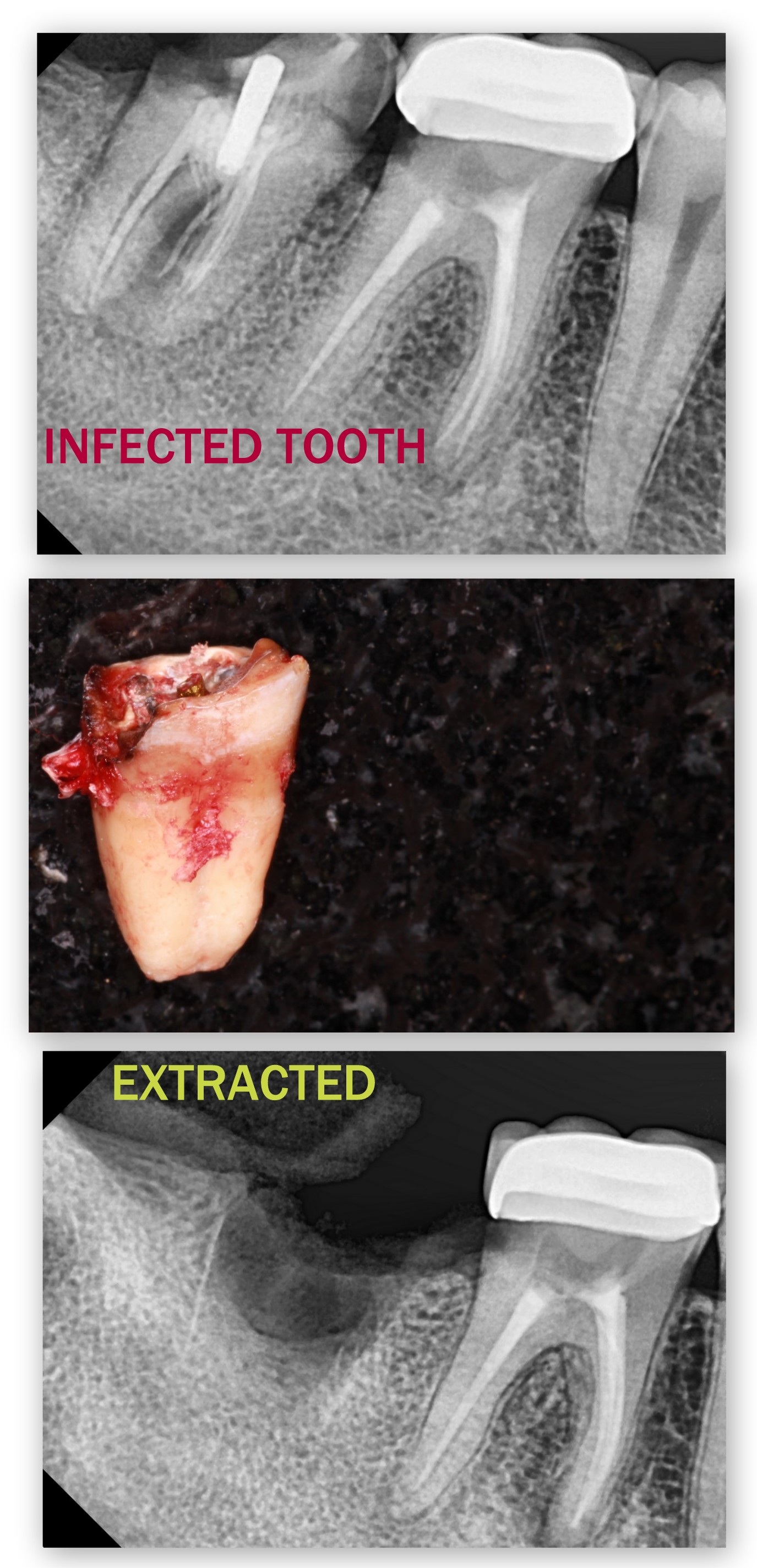 When carefully executed by skilled and experienced doctors it is a very safe and predictable procedure. Local anaesthesia is used and the teeth are carefully and delicately removed. In some cases surrounding bone may need to be trimmed to remove the tooth. The opening left after the extraction is sealed with stitches to avoid any bleeding and ensure healing.